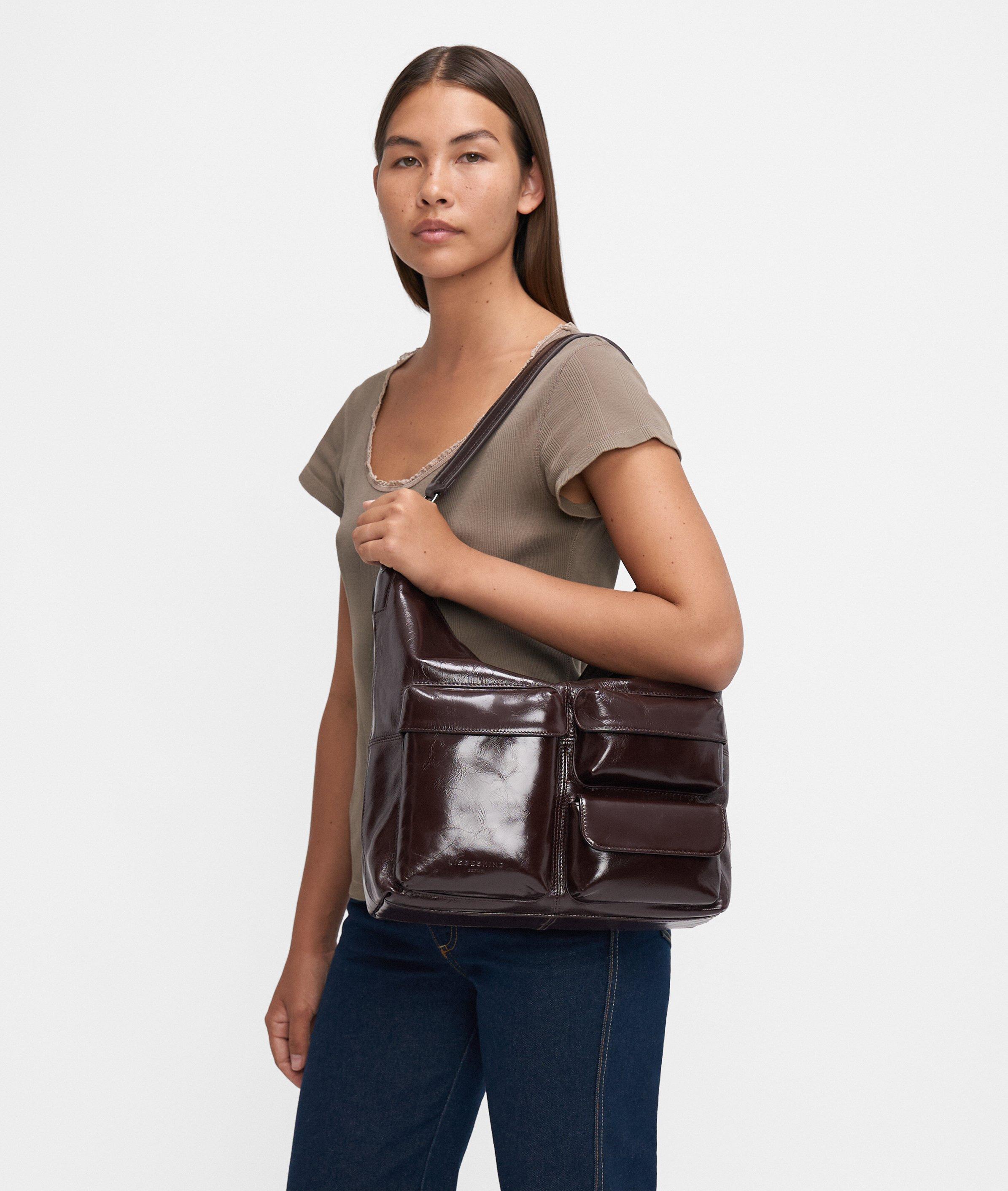 Spacious shoulder bag made from shiny cowhide leather